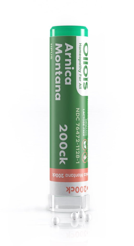 OLLOIS Arnica Montana 200CK homeopathic single medicines. Traditionally used to temporarily improve symptoms of pain from muscle trauma, bruises, muscle stiffness and muscle soreness. The dosage is not related to the weight and age of the patient. In general, dissolve 5 pellets 3 times a day until symptoms are relieved or as directed by your health care professional. Contains Appx. 80 pellets in each tube, each dose should be placed under the tongue of adults and children, or in the cheek of an infant, where they will dissolve. It is preferable to take apart from meals. No known side effects, No Known drug interaction. For informational purposes only, Not intended for, and neither should it be taken as a substitute for professional medical advice. Stop use and ask a physician if symptoms persist for more than 3 days or worsen. If PREGNANT or breast-feeding, ask a health professional before use. Keep out of reach of children. Homeopathic Medicine. Vegan.