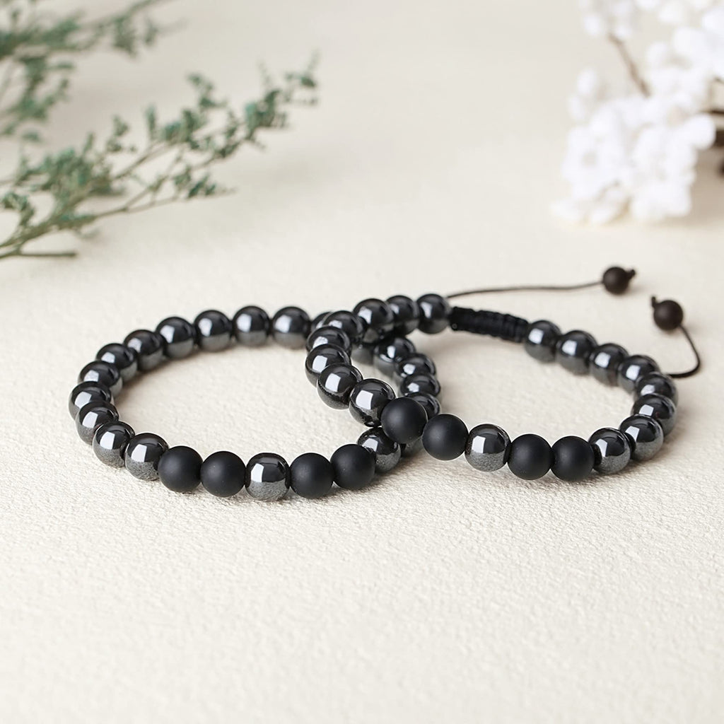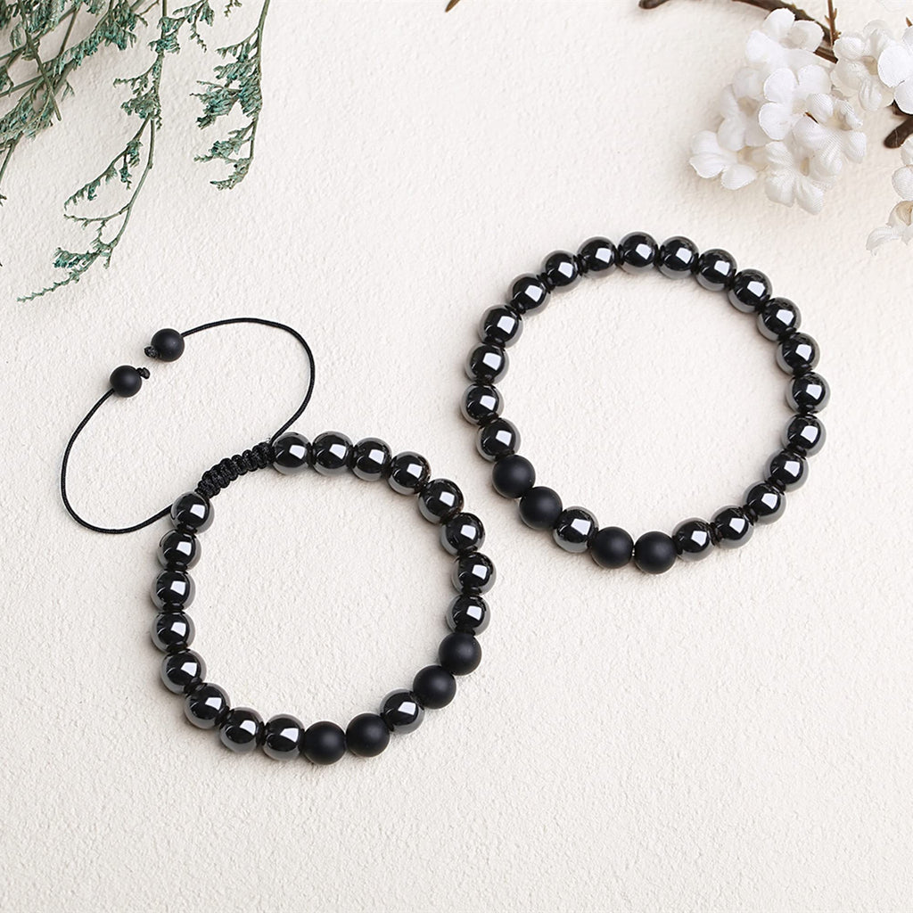 We are a professional team, we sourcing the world's best quality quartz stone to make healing crystal jewelry. Natural quartz crystal stone contains rich and powerful pure reiki energy, which can improve human energy, enhance vitality, make our heart and calm help us live better. We hope to bring such positive energy to everyone in need, and hope that everyone can have a better life. is a power stone that improves blood circulation. Daily wear can help us control weight. Wear it during walking or other exercises to speed up blood circulation and help us lose weight faster. Wearing it for a long time can improve blood circulation, relieve soreness, resist fatigue, soothe the nerves, help sleep and improve sub-health. At the same time, due to the non-replicability of natural stones, each product we make has a unique natural pattern texture and color, which symbolizes that everyone is irreplaceable. Uniqueness is a gift of nature. Quantity: 2pc Healing Crystal Beaded Hematite Mens Bracelet. (Includes an adjustable drawstring bracelet and an elastic bracelet) Material and color : Black Frosted and Hematit. Properties and specifications: The Bead size - 8mm. Necklace Chain: The adjustable drawstring bracelet 6.6 inches ( 16.8cm). The Elastic Stretch bracelet ?inches ( ?cm) Weight - about ?g. We have exquisite QINJIEJIE gift boxes shipped together with Healing Crystal Necklace . No need to purchase additional gift boxes. A perfect gift for Christmas, birthday, wedding, graduation, valentine's day! If you encounter any problems shopping in the QINJIEJIE store, please contact us without hesitate, our customer service team will reply and handle the problem for you soon.