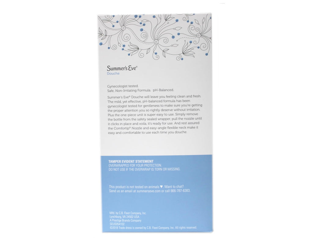 • Q: Is Summer's Eve Douche safe for sensitive skin? A: Yes, Summer's Eve Douche is gynecologist-tested and pH-balanced to match the natural pH range of a healthy vagina, making it gentle and non-irritating for most users.