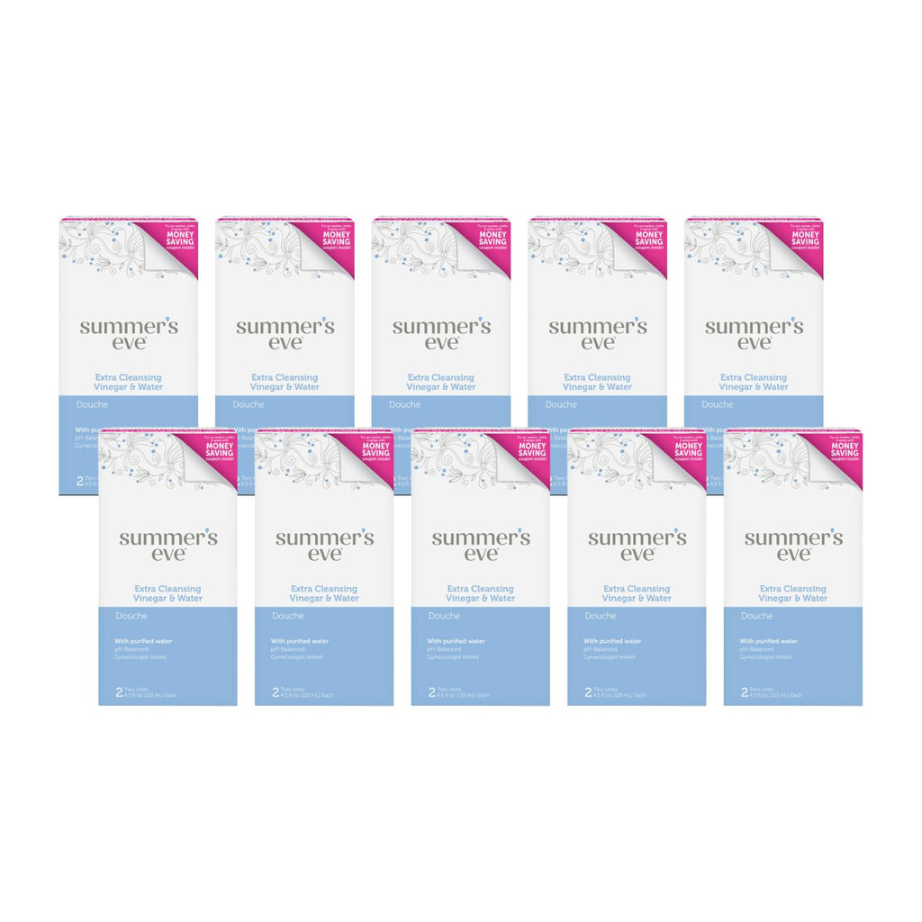 • Q: What are the packaging details for this product? A: Summer's Eve Extra Cleansing Vinegar & Water Douche comes in a pack of 10, with each pack containing 2 douches.