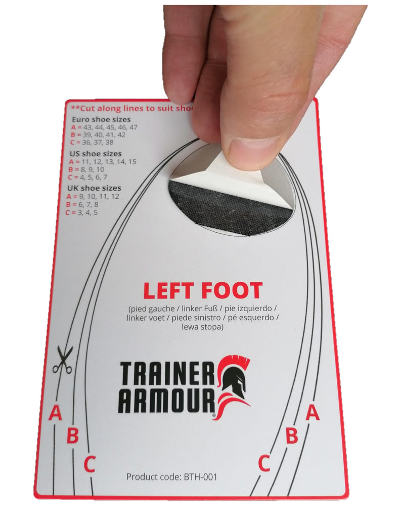 • Q: How do I apply the Trainer Armour patches? A: The patches can be applied quickly and easily without removing shoelaces. Simply use the applicator to position the patch above the big toe area.